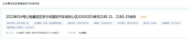 2022年6月1日,大华以40.4978亿元竞得嘉定区安亭镇国际汽车城核心区JD030201单元21BE-21、21BG-25地块【即大华梧桐樾】,成交楼板价1.9万元/㎡,地块房地联动价4.2万元/㎡。就在昔日红盘万科西郊都会的隔壁!