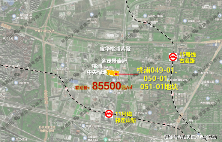 2023年8月,上海二批次土拍,宝华&东苑以总价328800万元成交 普陀区桃浦科技智慧城(W06-1401单元)049-01、050-01、051-01地块 ,地块出让面积30126.9㎡,容积率2.5,溢价率4.05%,楼板价43655元/㎡,房地联动价85500元/㎡。