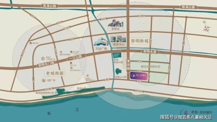 【行政中心】崇明新城,崇明区政府所在地,布局崇明政府/行政服务中心、崇明会议中心、广电中心、规划展示馆、科技文化中心、美术馆、图书馆、崇明法院等政府重要职能部门。