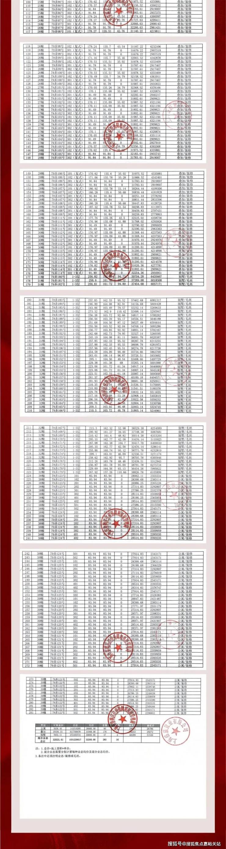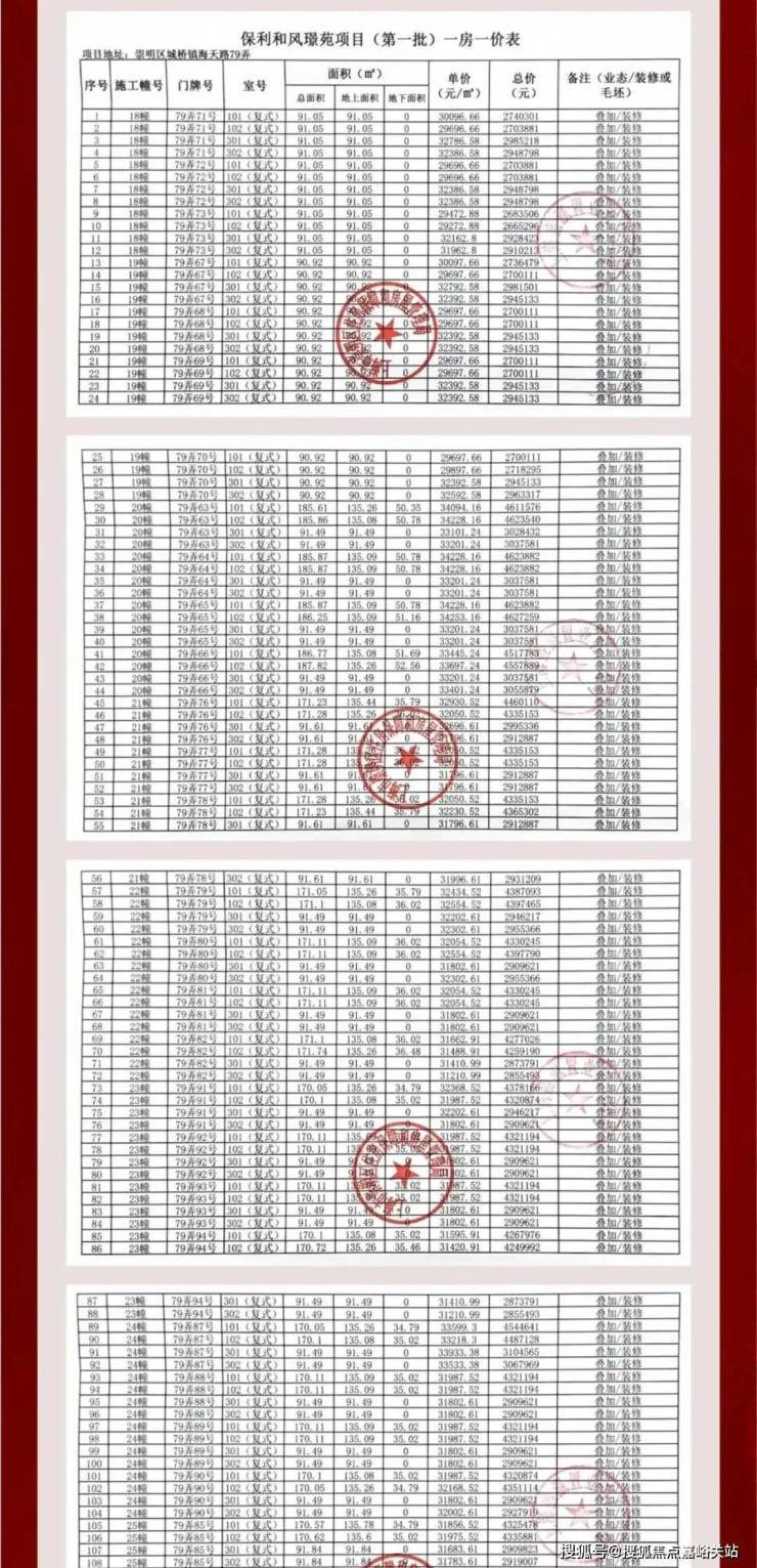 项目一房一价表: