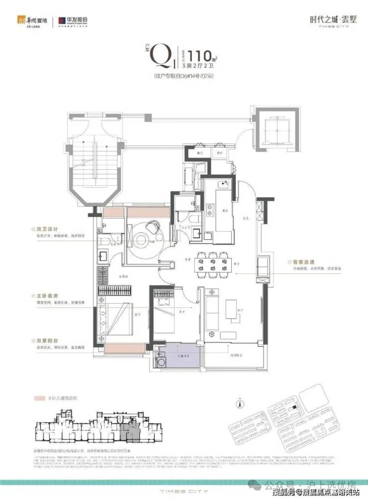 170m²上叠,南向双阳台+南北双露台: