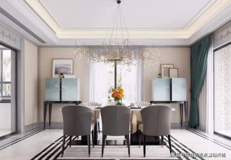 小区建筑设计以简欧风格为主, 外墙干挂大理石,整体是浅米黄色调。四周采用铝合金断桥双层中空玻璃采光窗装饰和庄重石柱,为别墅的豪气程度增添色彩。样板房室内装修为轻奢和简欧混搭风格,自带高级感的设计元素彰显了住户的气质。(结构形式采用砖混结构,优点是保温隔热效果好,缺点是整体性较差,不能擅自拆改墙体。)