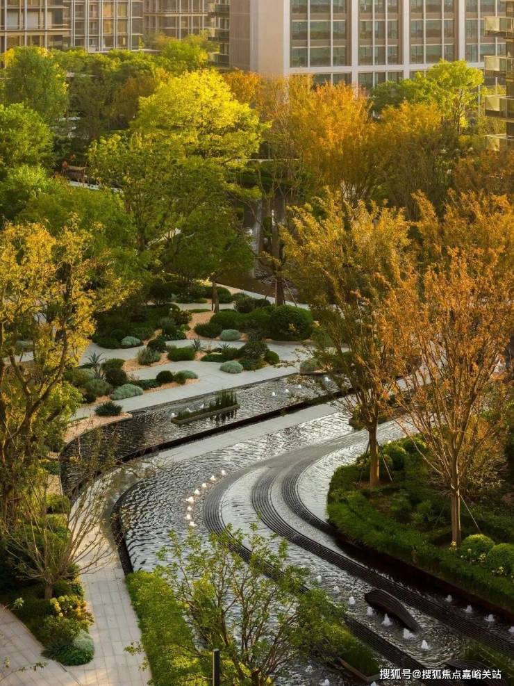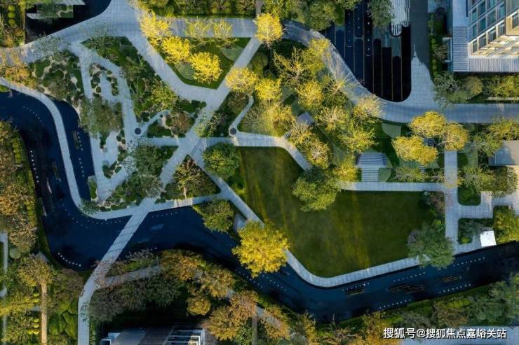 三重景观层次搭配 4:6 黄金配比的常落乔木, 春见新绿、秋赏红叶 ,让四季流转都有诗意相伴