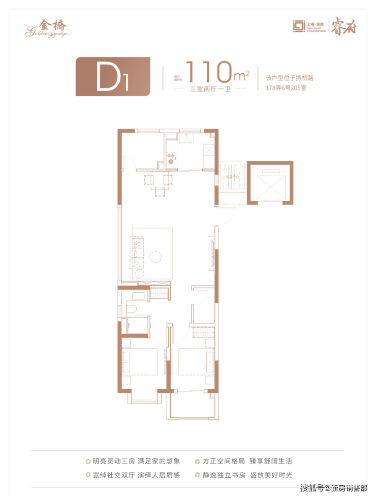金鼎睿府售楼处电话:400-9699-334【预约热线】☎✅建面约110㎡3房2卫,标准的飞机户型:南北通透、三开间朝南,室内几乎没有走廊等空间浪费,不管是通风、采光、尺度感还是私密性,这个户型都做的相当出色。