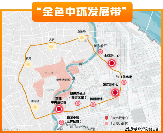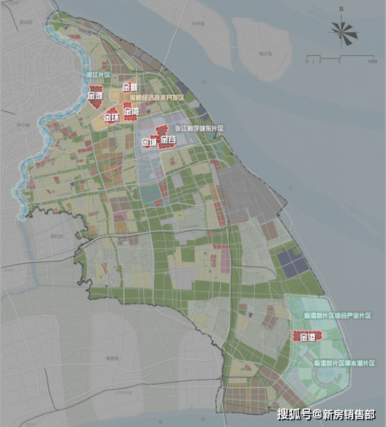 举个例子,我们从金桥开发区的详细规划中就可以看出,“七朵金花”中的三个:金环(金桥副中心项目)、金鼎、金城都是开发区里交通条件、生态环境、城市界面更好地区。