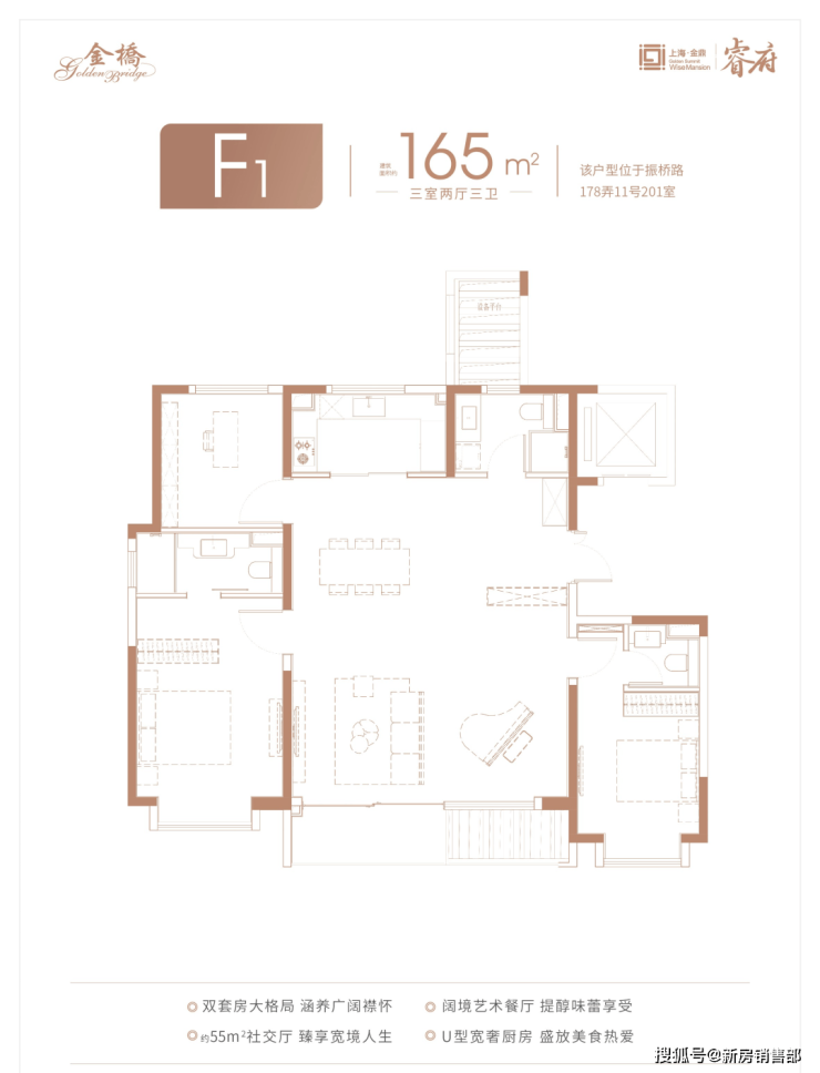 在浦东,建面约165㎡以上的产品相当稀缺,而约165㎡的3房就更是凤毛麟角了。