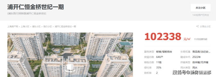 第一,浦开仁恒金桥世纪已经交房的次新房挂牌早已突破10万/㎡。