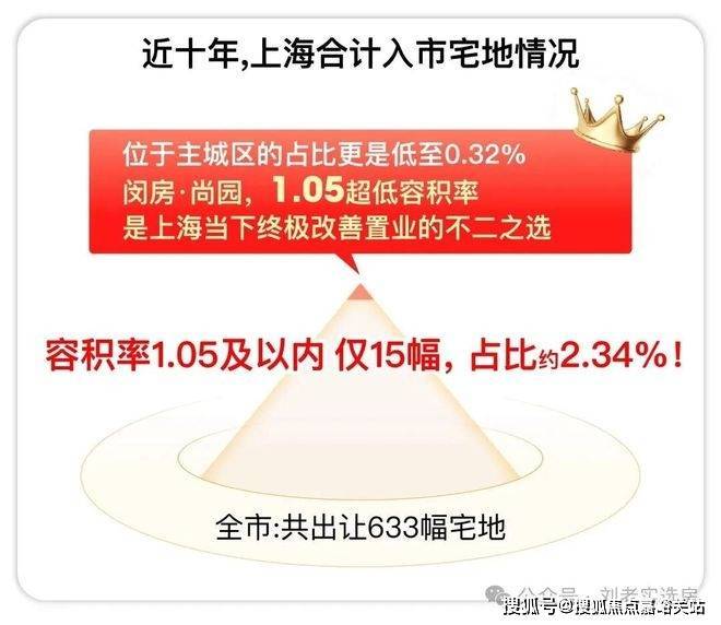 据小编统计,2015年至今的10年时间里,上海土地市场公开出让的住宅地块合计633幅宅地,仅有15幅容积率1.05及以下地块,占比约2.37%