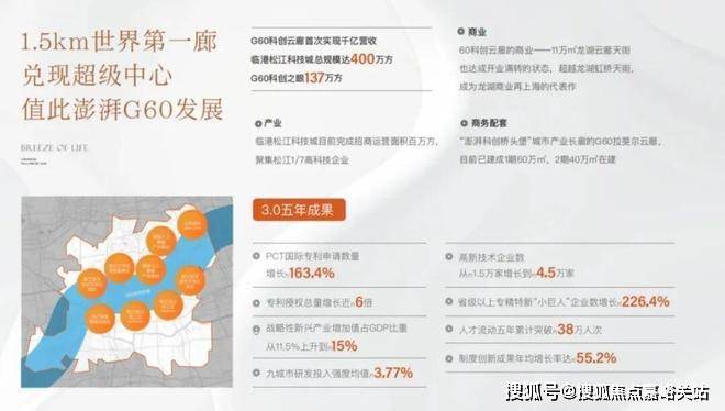 约120万方临港松江科技城,目前完成招商运营近百万方,聚集松江约1/7高科技企业;约130万方G60之眼,已建成约20万方。