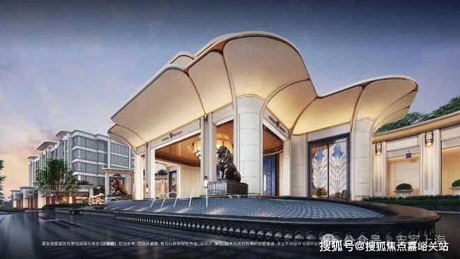 玉兰门庭」摩登飘逸,环抱式落客前场,大师定制非遗掐丝珐琅门钹,流转温润光华,敬呈归家尊崇礼序,自此启幕生活的华贵序章。