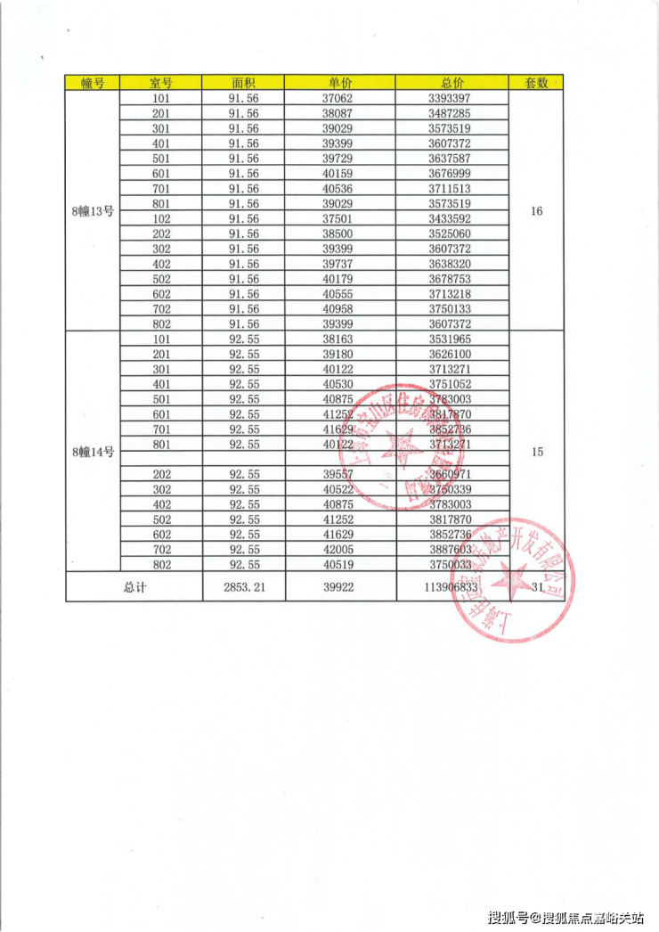 项目一房一价表