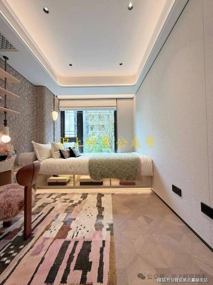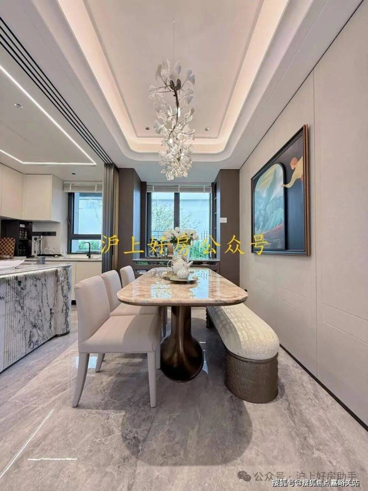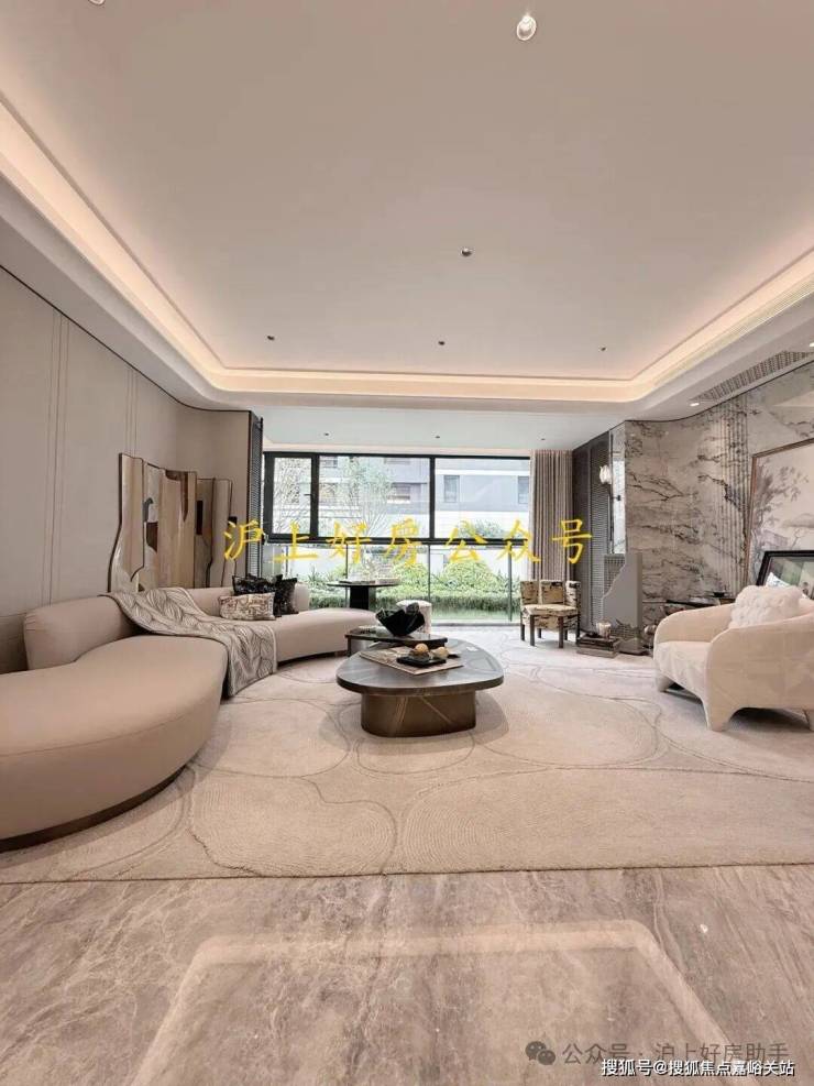 电视背景墙采用卡慕白的石材+皮革造型,弧形吊顶,相当讲究,连空调出风口的形状都打造为海上·清和玺logo山茶花的形状~~三大件为大金(或同等档次)中央空调和地暖,新风系统为百朗(或同等档次),南向阔景阳台,采光视野一级棒!