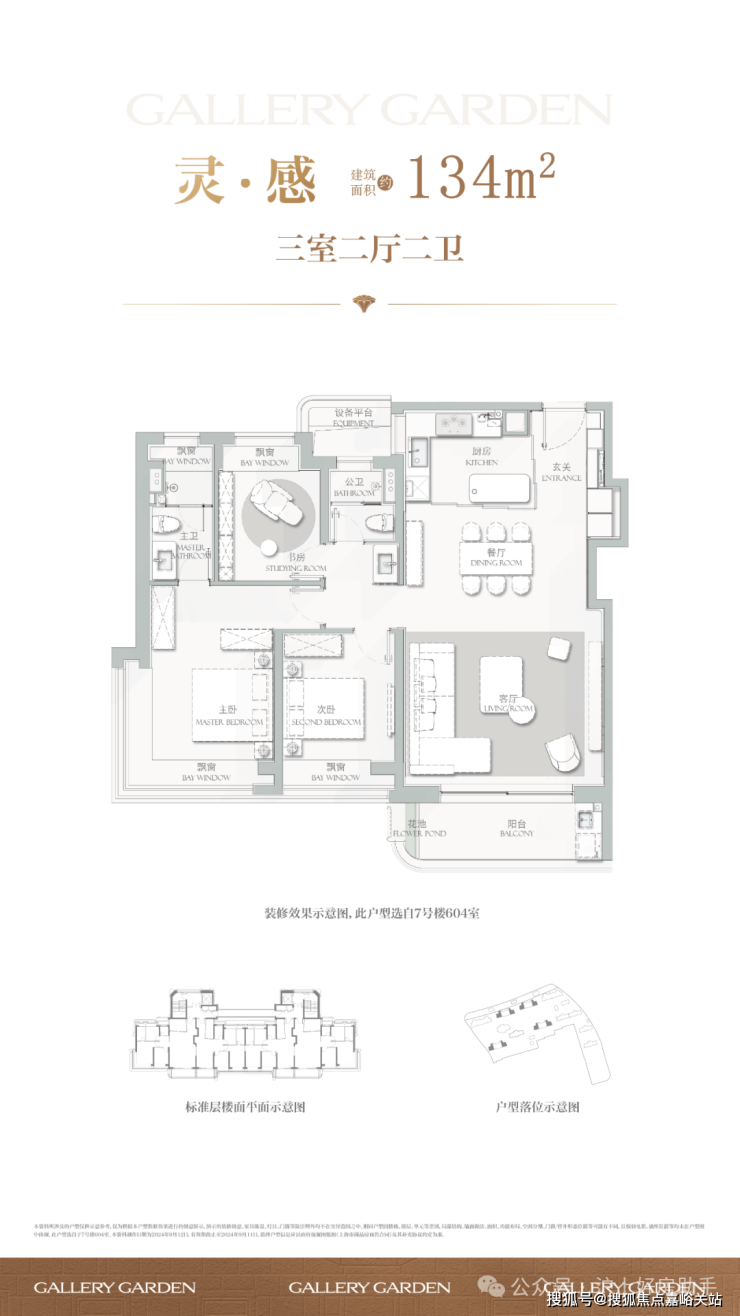 建面约134㎡ 3房2厅2卫▼