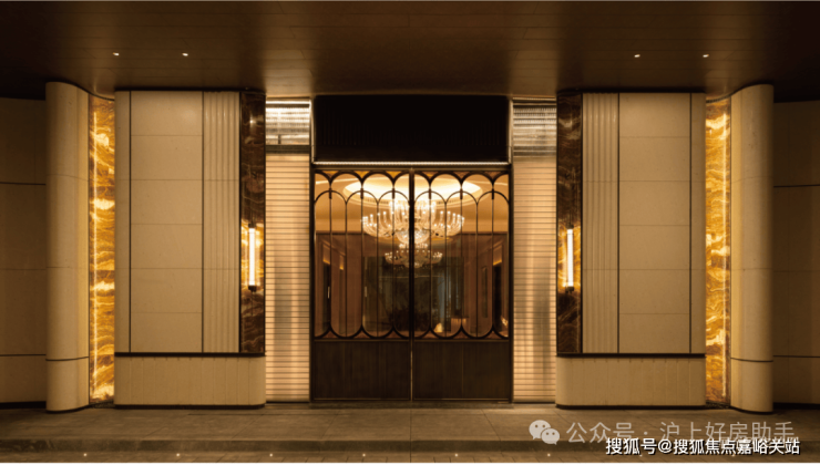 从室内走出室外,宛若一次穿梭百年海派艺术的旅行。甚至触碰的门面,都有源自徐汇历史深处的浓厚艺术中庭的大门设计为“海派光厅”,其玻璃镜面由匠人手工绘制经典海派线条,邬达克经典的纹路设计嵌于表面,同时墙面同样定制了优雅的奢石装饰,让整个空间的布局既有历史的风韵,也有现代的奢华。