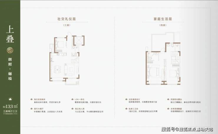 叠墅产品分为4F、6F层叠加, 主力产品建面约 约122-133㎡上叠,132㎡大平层,131-145㎡下叠。