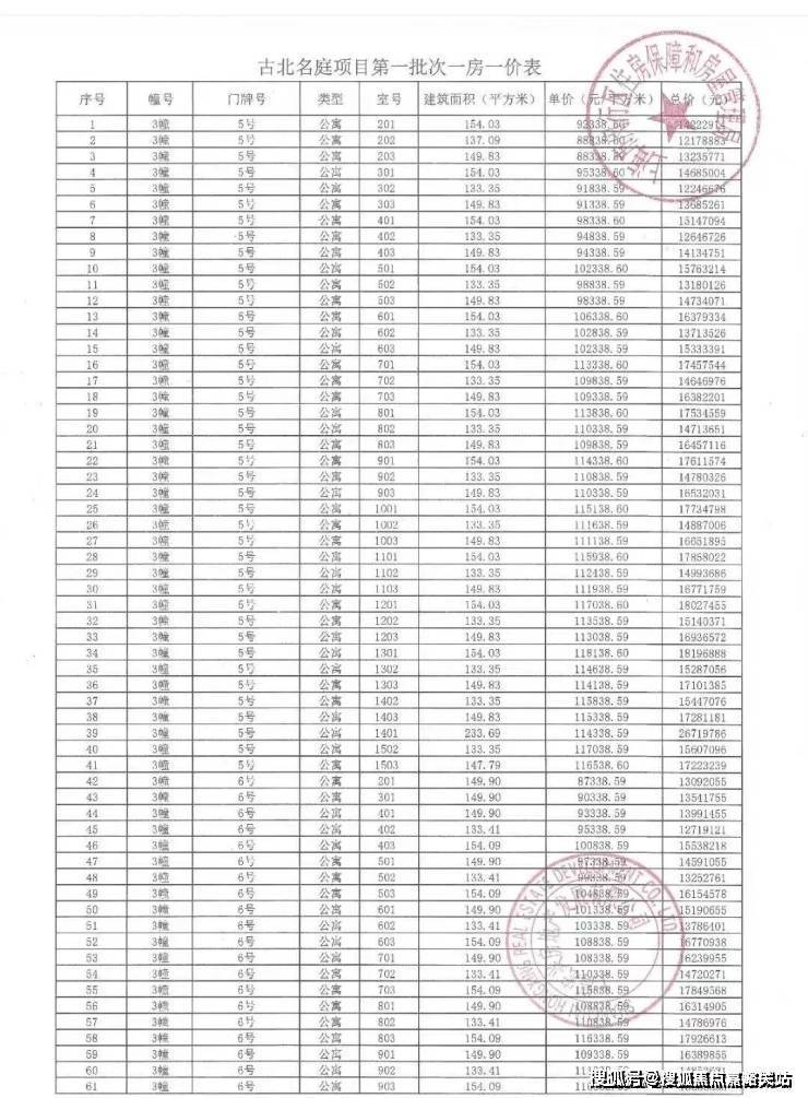 一房一价表