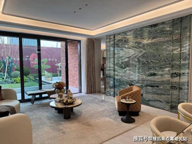 建面约139㎡客厅的电视机背景墙,✨✨✨【中建壹品外滩元境】售楼处热线预约:4001185086✔✔✔❤❤❤采用维多利亚绿奢石,堪称“流动的翡翠”,室内还用到了皇家白玉,大量奢材堆满,非常舍得用料。✨✨✨【中建壹品外滩元境】售楼处热线预约:4001185086✔✔✔❤❤❤