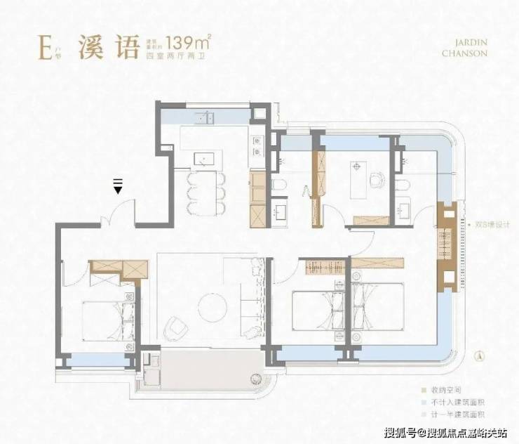 项目建面约139㎡4房则是集大成的终极改善户型。
