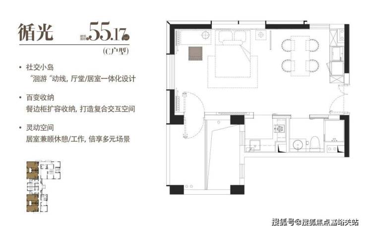 C|循光|建面约55.17 m²|一室一厅一厨一卫
