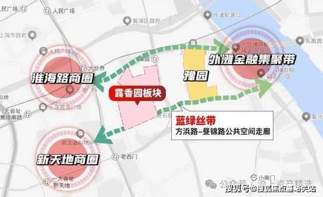 露香园至人民广场/淮海路/外滩/豫园等核心地标均在约1–2公里直线范围,真正位于“左右逢源”的内城核心地位——