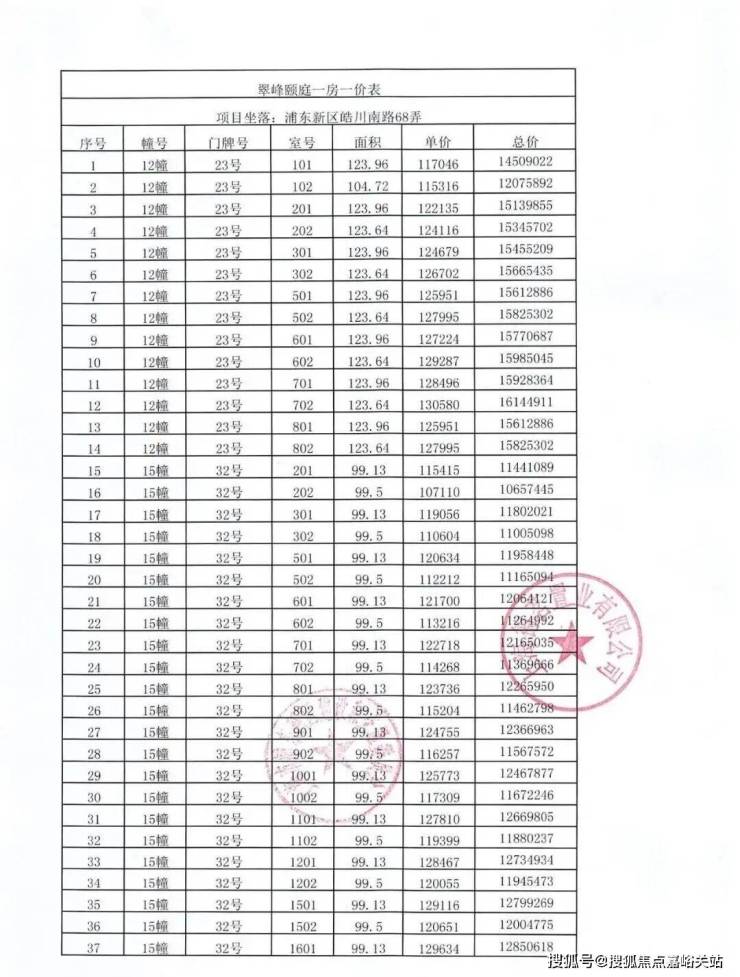 一房一价表如下: