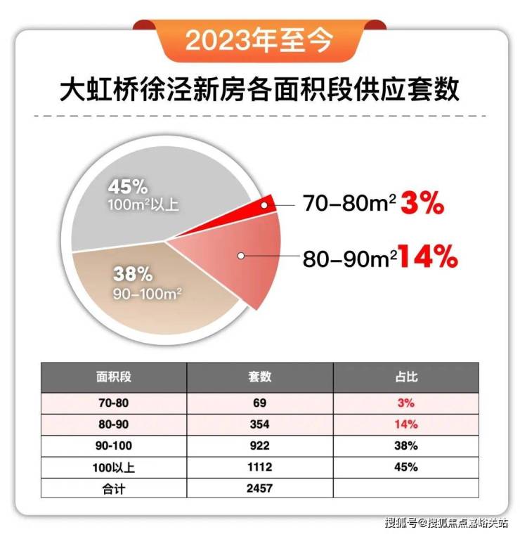 从数据上来看,2023年徐泾新房供应的主力军是600万级建面约90+㎡户型;500万级建面80+㎡户型占比仅14%;400万级建面70+㎡户型更是臻稀程度爆表,占比仅约3%!