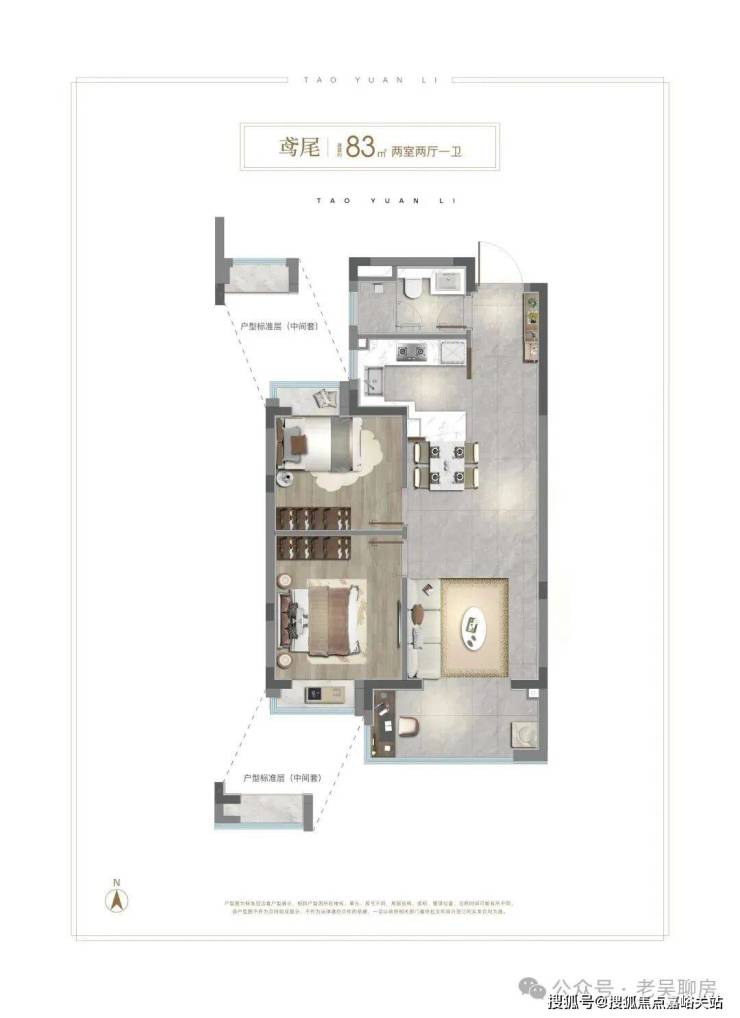 83㎡2房作为市场罕见的“入门级豪宅”,装修标准高达约4000元/㎡,客餐厅一体化设计搭配通阳台,空间利用率拉满,两卧均带飘窗;