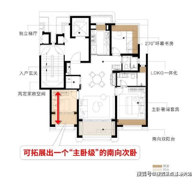 市场爆款户型,适合三代同堂、注重家庭互动与社交的高净值人群,总价约2800-4200万。户型四开间朝南,最大南向面宽可达14米,环幕全景落地窗,采光视野极佳,可全方位欣赏滨江景观;双套卧设计,主卧与次卧均配备独立衣帽间、卫浴,兼顾家人隐私与舒适度,主卧空间宽敞,配备观景飘窗,提升居住体验;LDK一体化格局搭配开放式厨房与中岛台,强化家庭互动,独立书房、家政间、储藏室一应俱全,得房率约87%,空间利用率高,是圈层社交与家庭居住的完美结合,二批次计划于2026年4月加推该面积段房源,意向客户可重点关注。