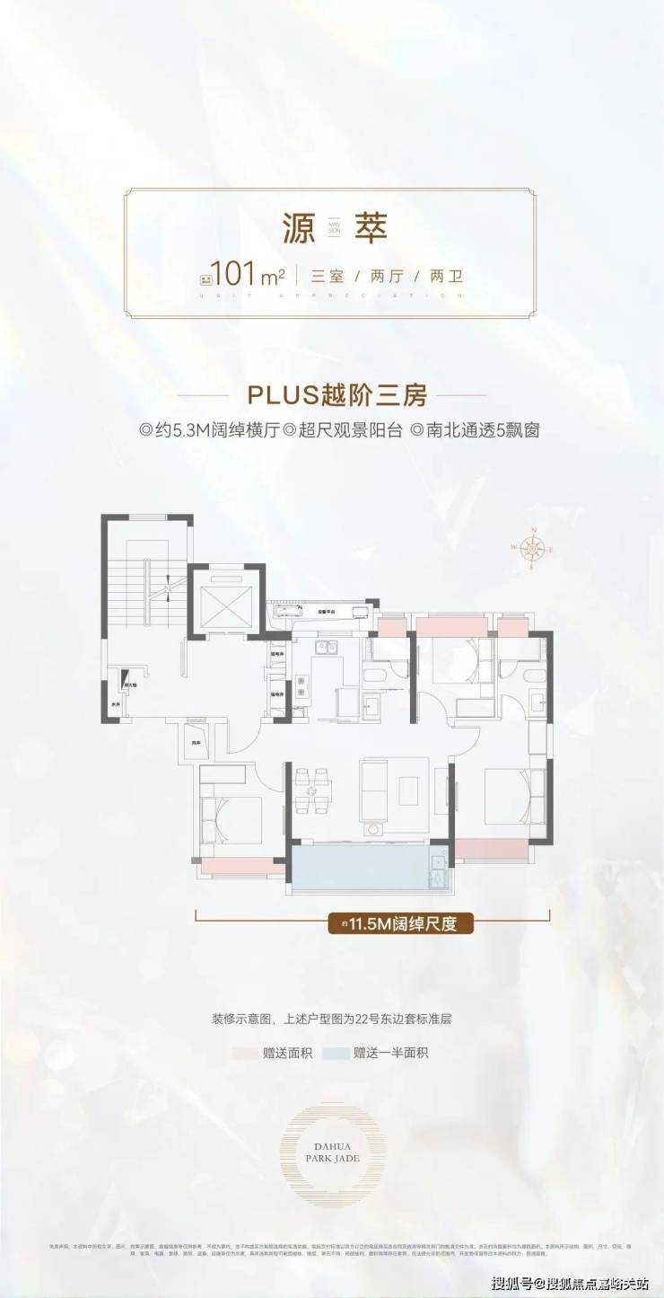 建面约101㎡的三房两厅两卫 ☑️☑️大华公园柏翠售楼处电话:400-1183-605☑️☑️