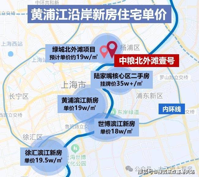 在上海一线滨江板块地图中,陆家嘴,黄浦滨江、徐汇滨江等地新房单价都已突破19万/㎡。今年6批次,北外滩地块也紧随其上,溢价率46.3%,预计售价约19万/㎡左右,成为今年最炙手可热的滨江板块之一。