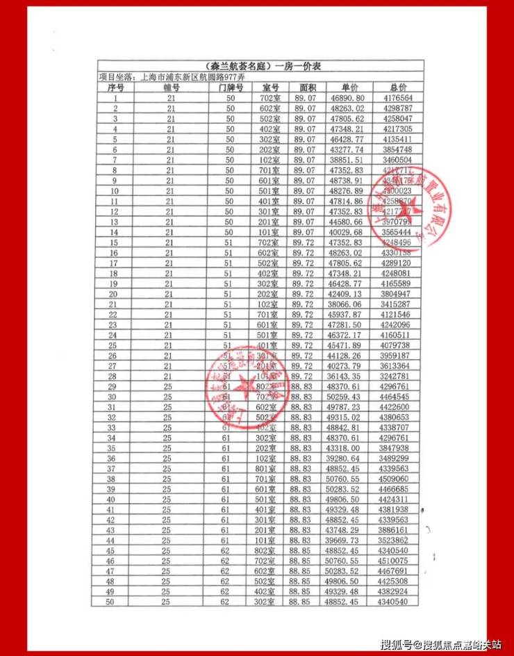项目一房一价表