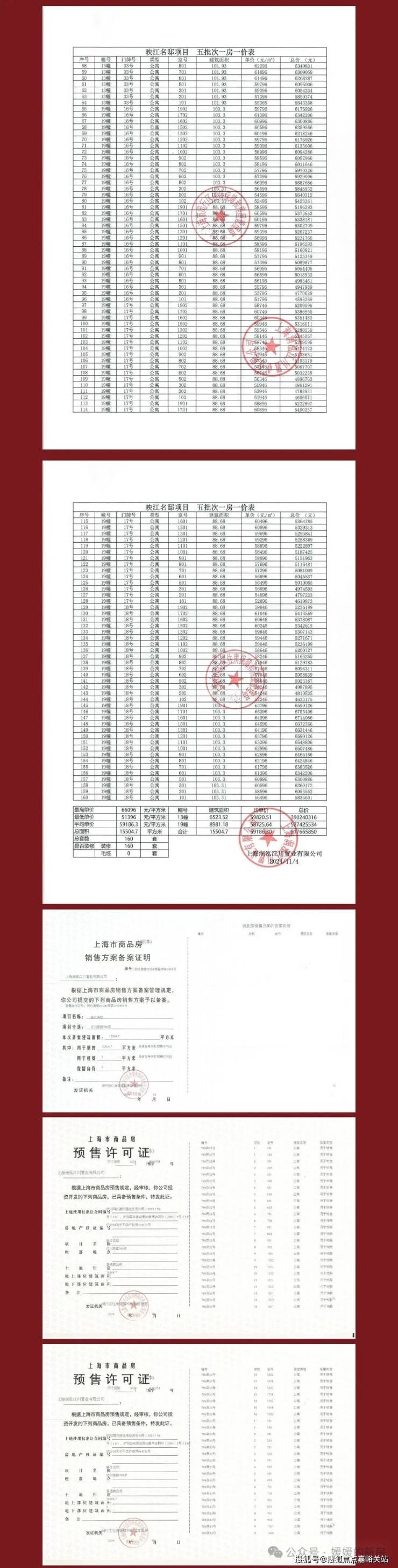 本资料为要约邀请,不作为要约或承诺,项目具体信息以政府最终审批文件为准; 项目周围环境、交通及其他公共设施的效果示意以实际落成或政府部门标准文件为准。 有关学区划分根据政府部门当年的划分为准,不作 为开发商的任何承诺。 相关宣传内容不排除因政府规划、规定及分期规划、未能控制等原因发生变化,在不违反法律法规、合同约定前提下,本公司有权对该宣传资料细节进行调整或更新。 预售证号: 闵行房管(2024)预字0000120号、闵行房管(2024)预字0000164号、闵行房管(2024)预字0000232号、闵行房管(2024)预字0000269号、闵行房管(2024)预字0000351号。 制作日期: 2024年11月19日。 开发商: 上海润泓江川置业有限公司; 备案名: 映江名邸 ; 营销推广名: 映江润府☑️☑️华润映江润府售楼处电话:400-1183-605☑️☑️