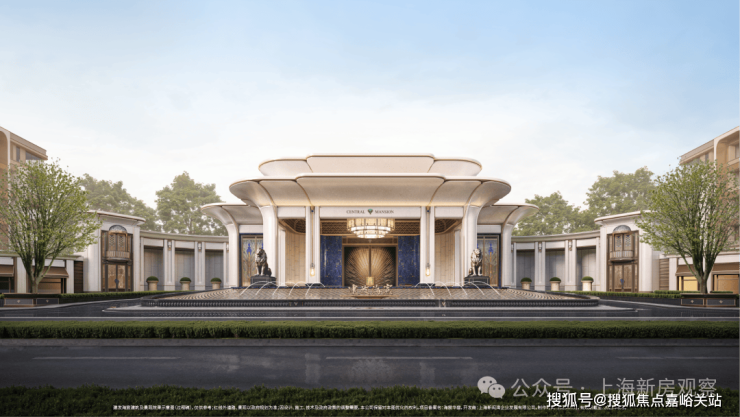「玉兰门庭」 摩登飘逸,环抱式落客前场,大师定制 非遗掐丝珐琅门钹,流转温润光华,敬呈归家尊崇礼序,自此启幕生活的华贵序章。