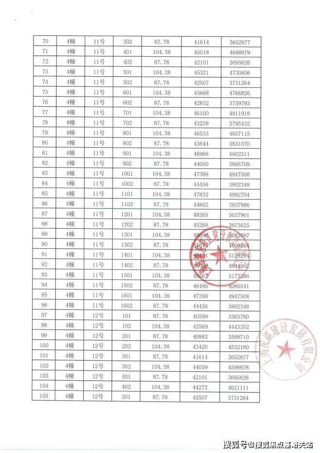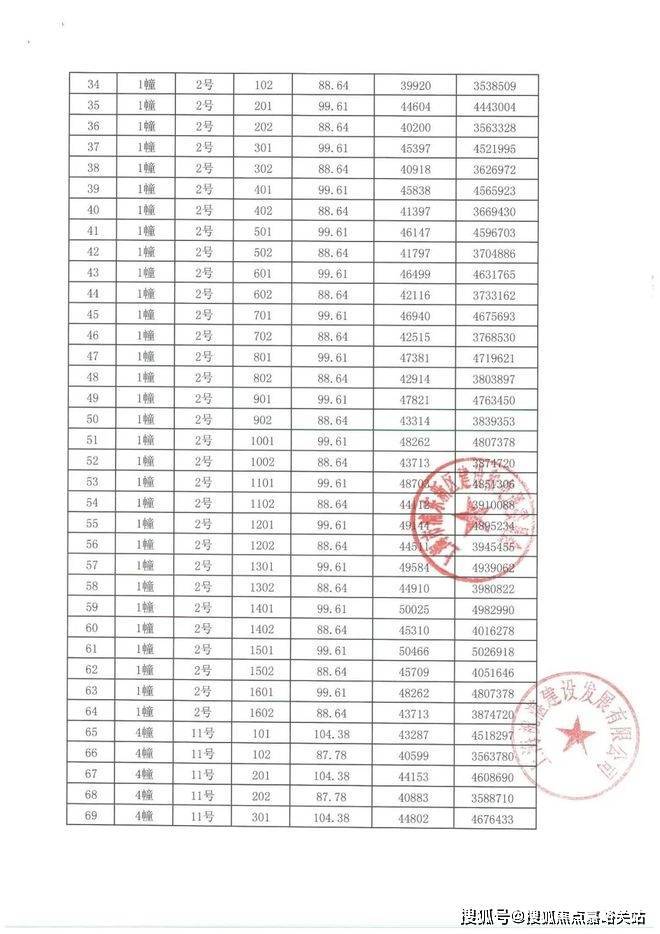 项目一房一价表