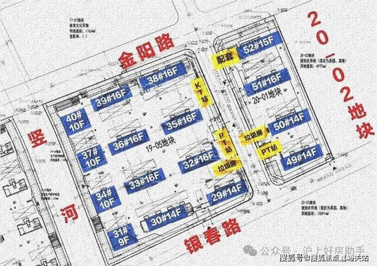 20-01地块:拟建6栋16F高层住宅、2栋14F高层住宅、3栋10F高层住宅、1栋9F高层住宅以及若干配套用房。