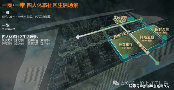 目前,四幅住宅地块方案设计已完成公示。首期4幅住宅地块将打造成依水而居的住宅场景,形成现代简约的人文社区。