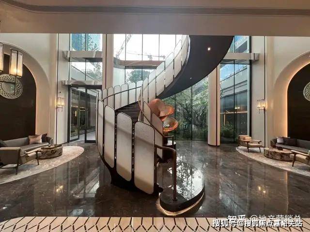 公区多种奢石与金属元素的组合搭配,精致的拱门和弧形穹顶,都能看出招商的用心和不惜成本。