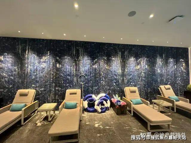 整个会所围绕下沉式庭院展开,其中最吸睛的就是艺术泳池,总爷仔细观察,泳池的天花、墙面均抽取海派元素,结合灯光做出了罕见的奢侈感。