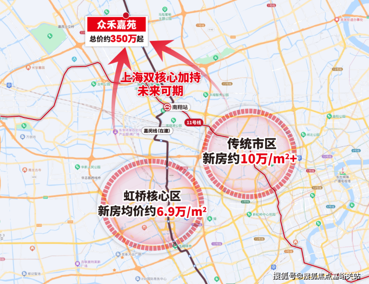 同时, 嘉闵线目前沿线新盘均价在6-8万/㎡,相比之下 总价约350万起的众禾嘉苑洼地属性明显,未来必然能持续的从虹桥、市区两大中心导入人口,经久不衰!