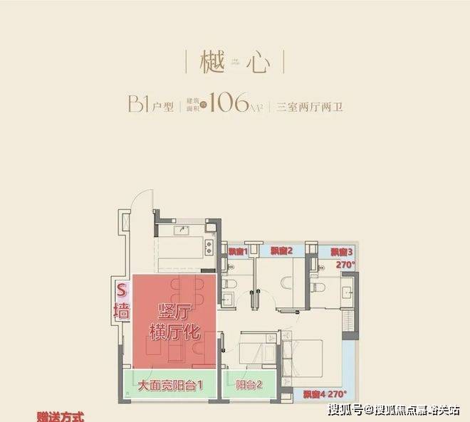 而在大华望樾106㎡的身上,我们看到了2026年新房户型的一种新趋势:竖厅户型横厅化。