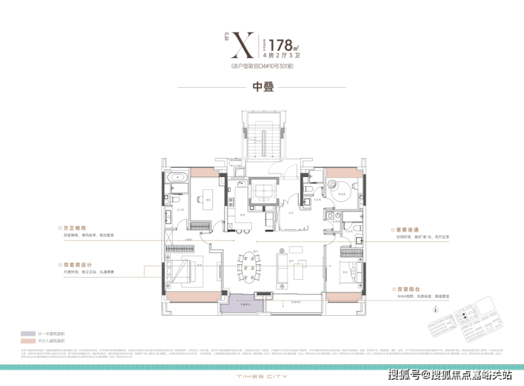 项目的中叠四开间朝南,超大IMAX的采光面,妥妥市区豪宅大平层的尺度感。
