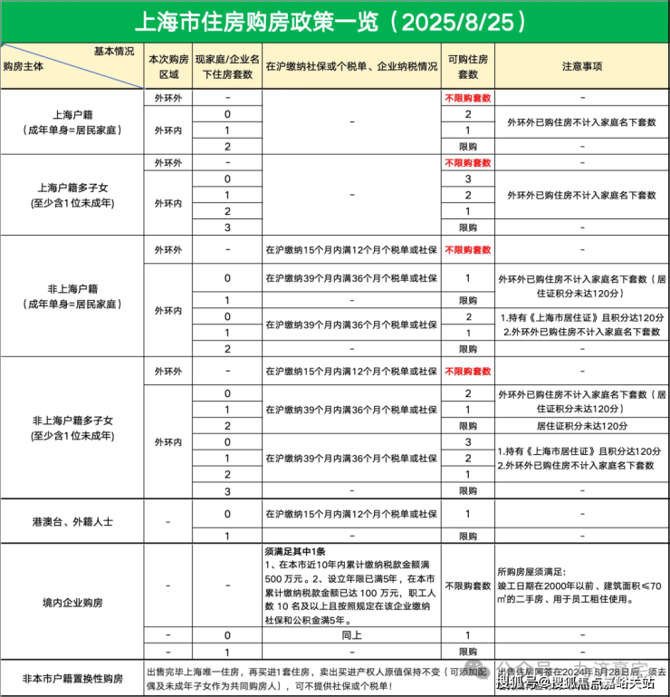 上海购房政策调整一览表: