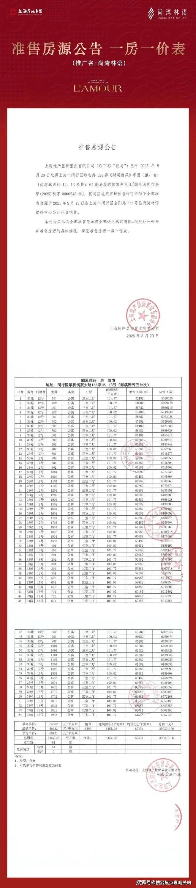 过会均价60431元/m²,510万起