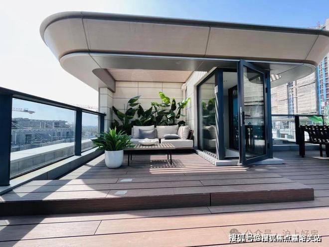 下沉花园,打造宽观景亭,亭外是苍苍乌桕,秋后丹红一片。☑️☑️招商臻境售楼处电话:400 - 8377 - 020☑️☑️
