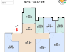 主力户型 2:118㎡ 四房两厅两卫(进阶改善)