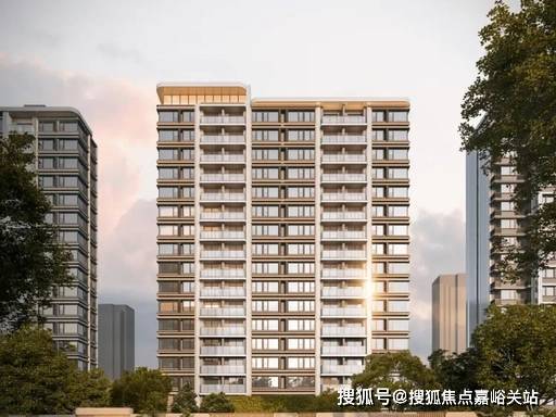 建筑风格:现代国际美学,蓝灰色玻璃 + 仿石铝板 + 艺术涂料立面,线条优雅简洁。弧面转角设计弱化硬朗感,酒店式高奢门头强化归家仪式感,楼间距开阔,采光与隐私双保障。