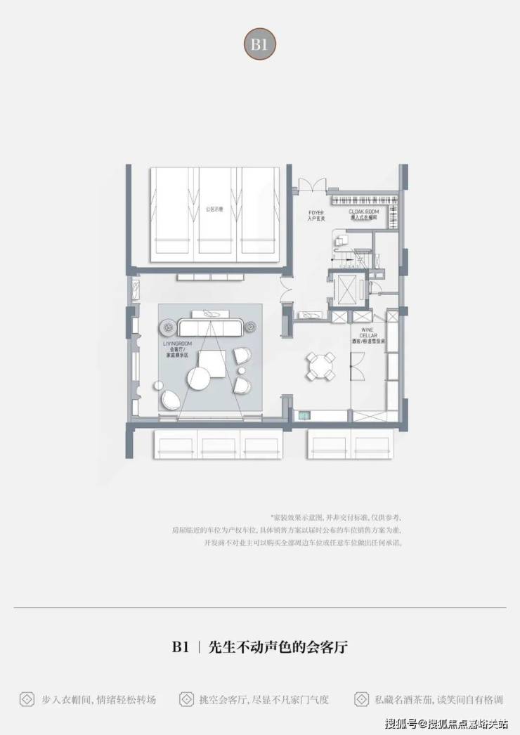 • 从容抵达步入地下会客厅,转角衣帽间换一身便服,轻松切换身份情绪