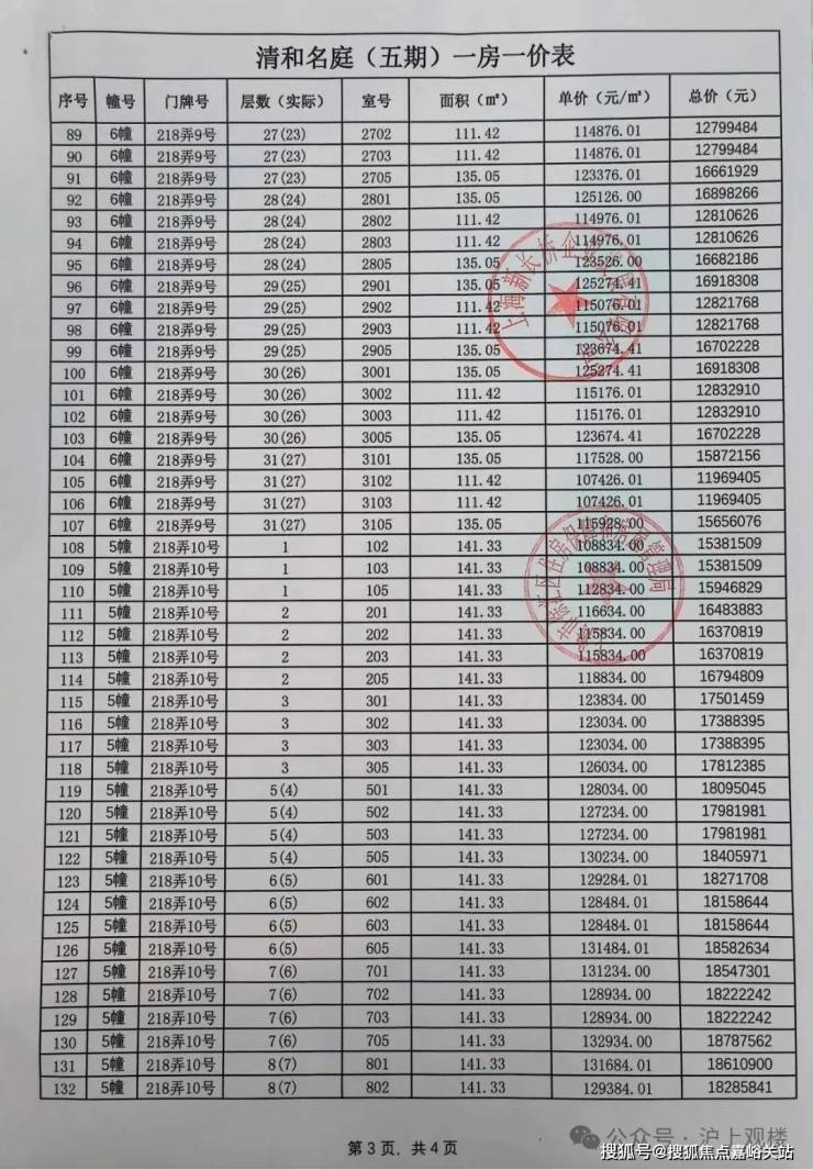 最新一房一价表公示 :