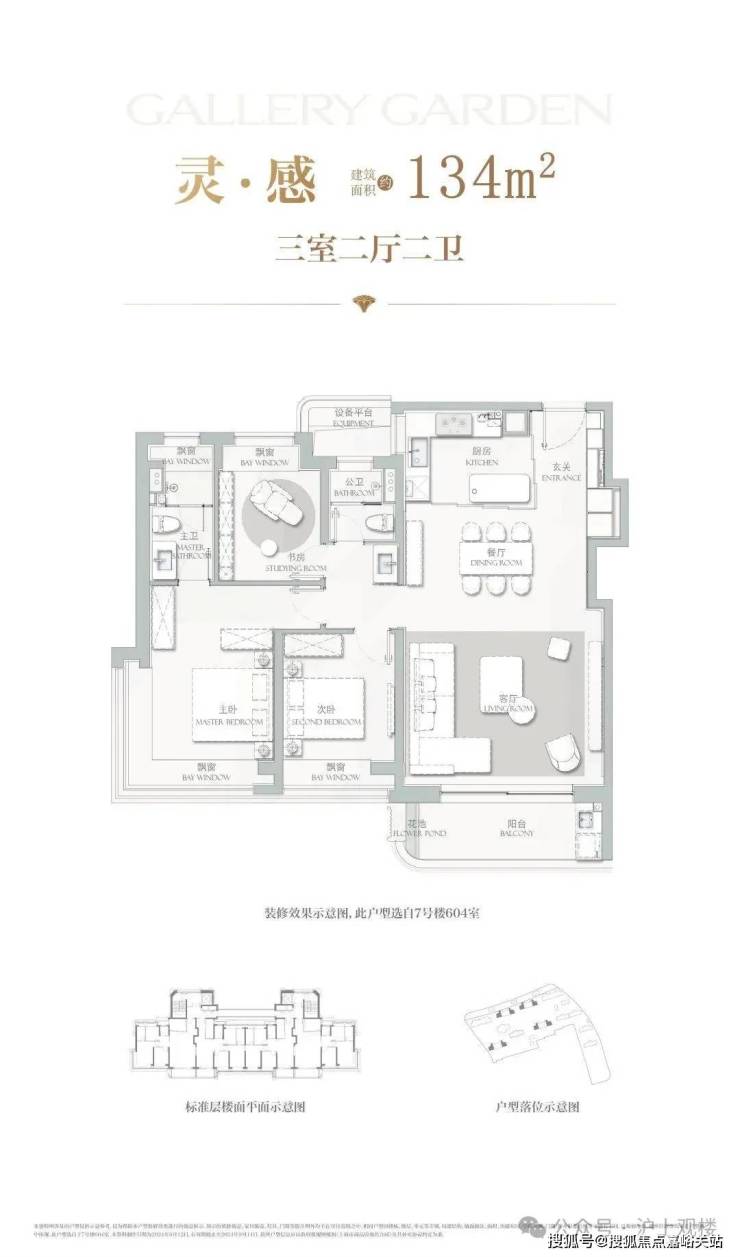 建面约134㎡3房2厅2卫,主力总价约1500-1700万,户型设计在上一个户型的基础上将各功能间尺度升级的同时,也做了一些更人性化的迭新。