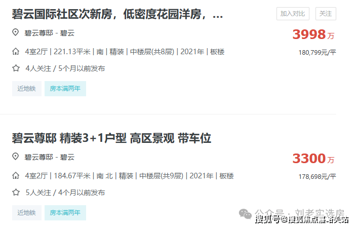 同步我又看了下低密洋房碧云尊邸,挂牌单价仍然稳居18万/㎡,200多平的洋房总价要近4千万, 国际住区的稀缺低密产品,抗压能力恐怖如斯!